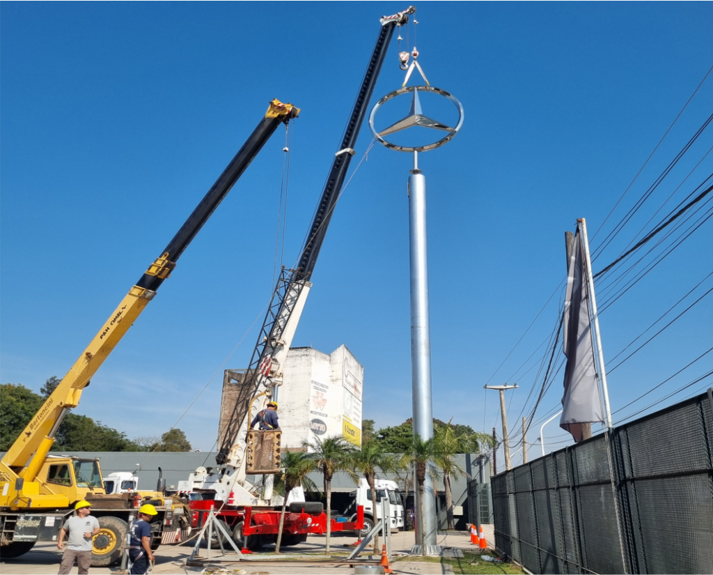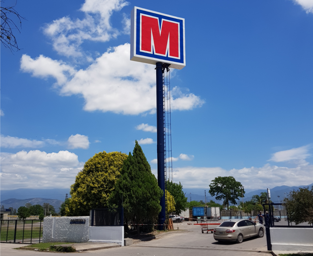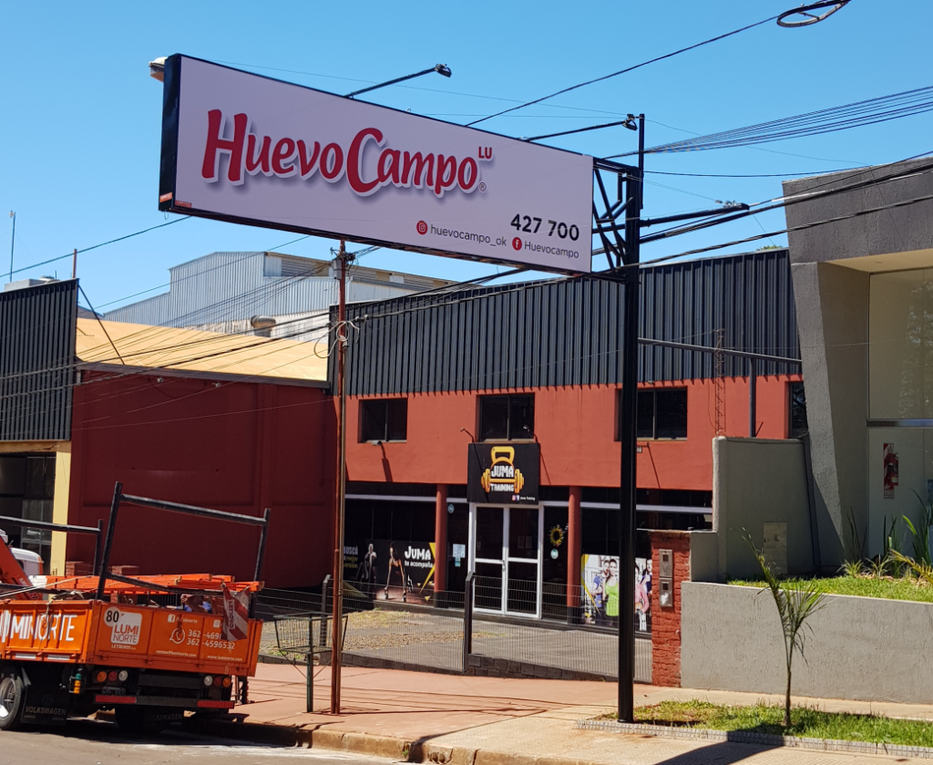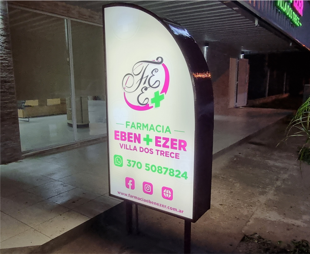 Chasis de Caño estructural con Lona Frontlight que puede ser Impresa UV, Impresa Latex ó Ploteada con vinilos de 5 años de duración. Iluminacion con Reflectores