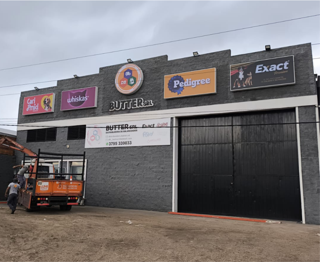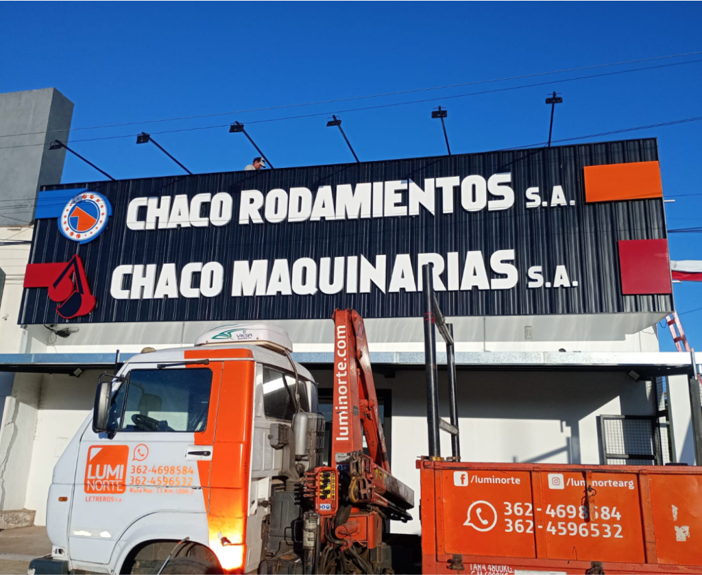 Revestimiento de Fachadas o Frenes con CHAPA T101 ó Onduladas, en colores prepintados ó por pedido. Se combinan con Carteleria Corpórea y con Bastidores de lona Frontlight